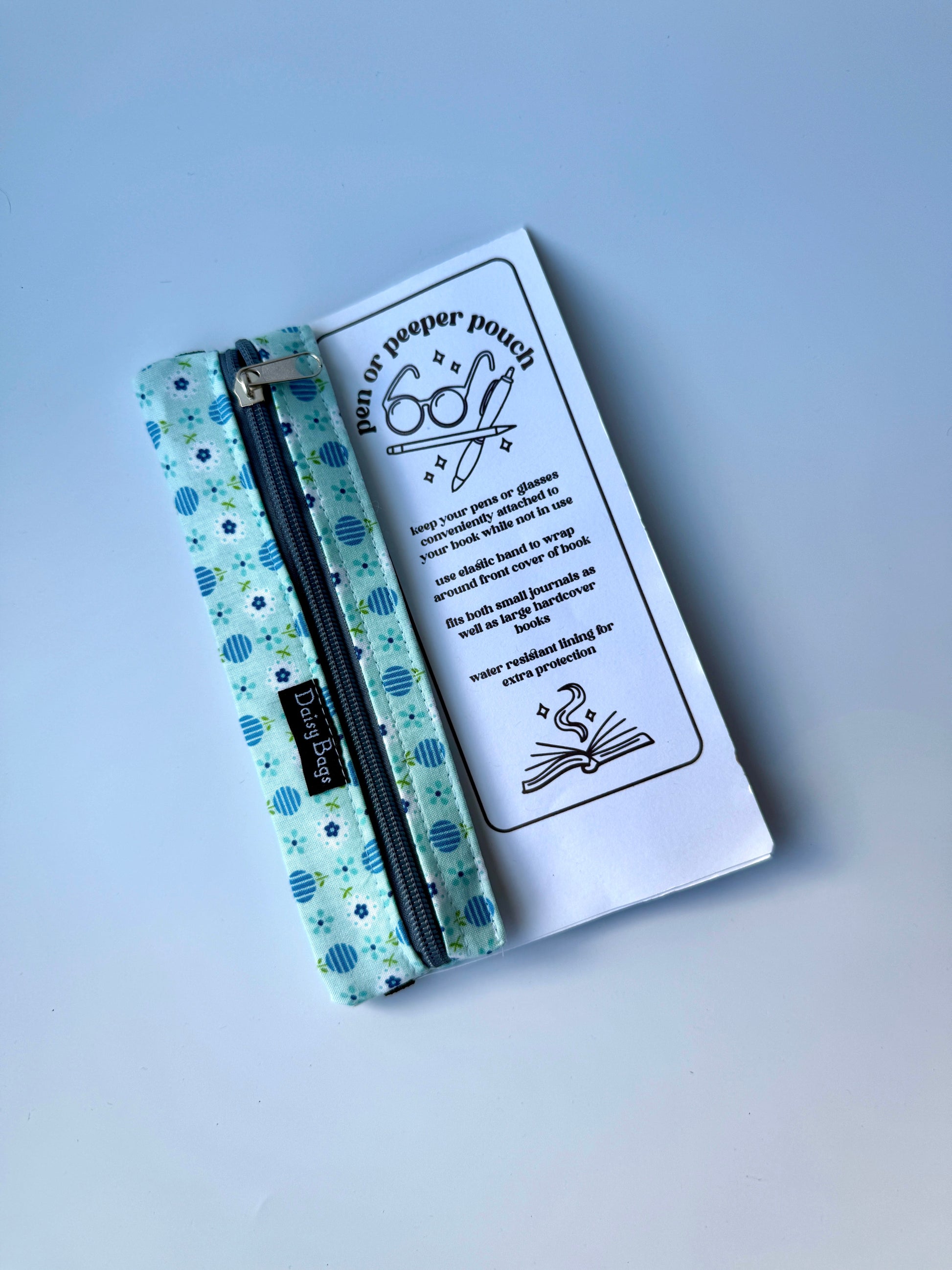 Gone are the days of hunting down your reading glasses or journaling pens! Attach this pouch to your journal or current book to keep your pens or peepers right were they are needed.