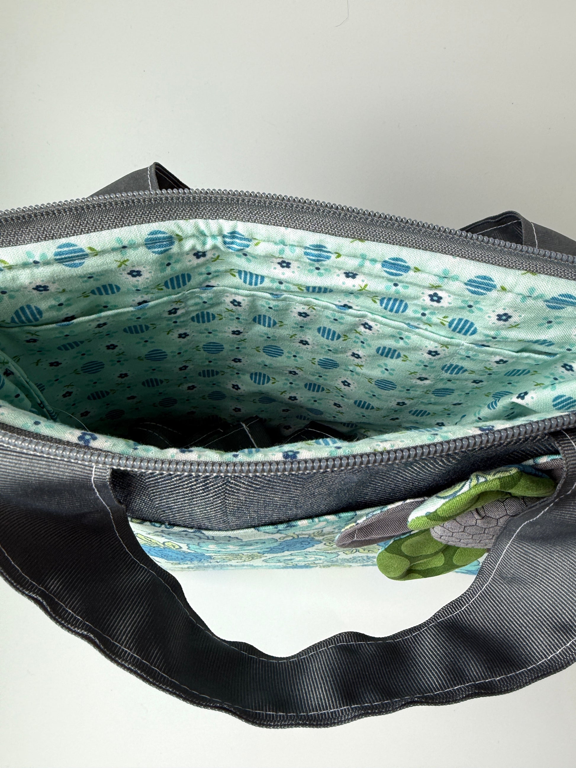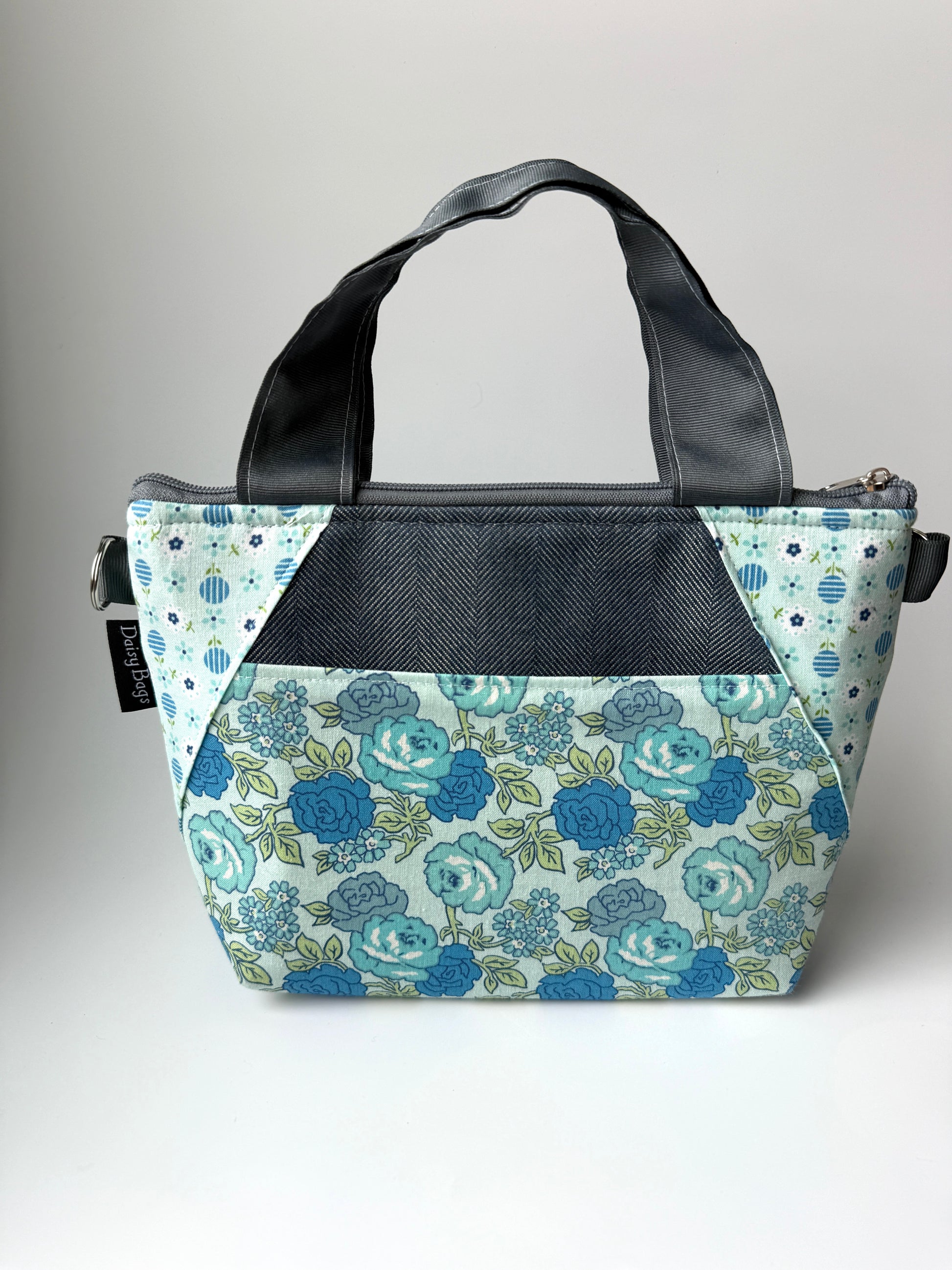 Just like my XL bitty bag BUT short and wide! Carry it by the cute grab handles or attached the adjustable cross body strap.