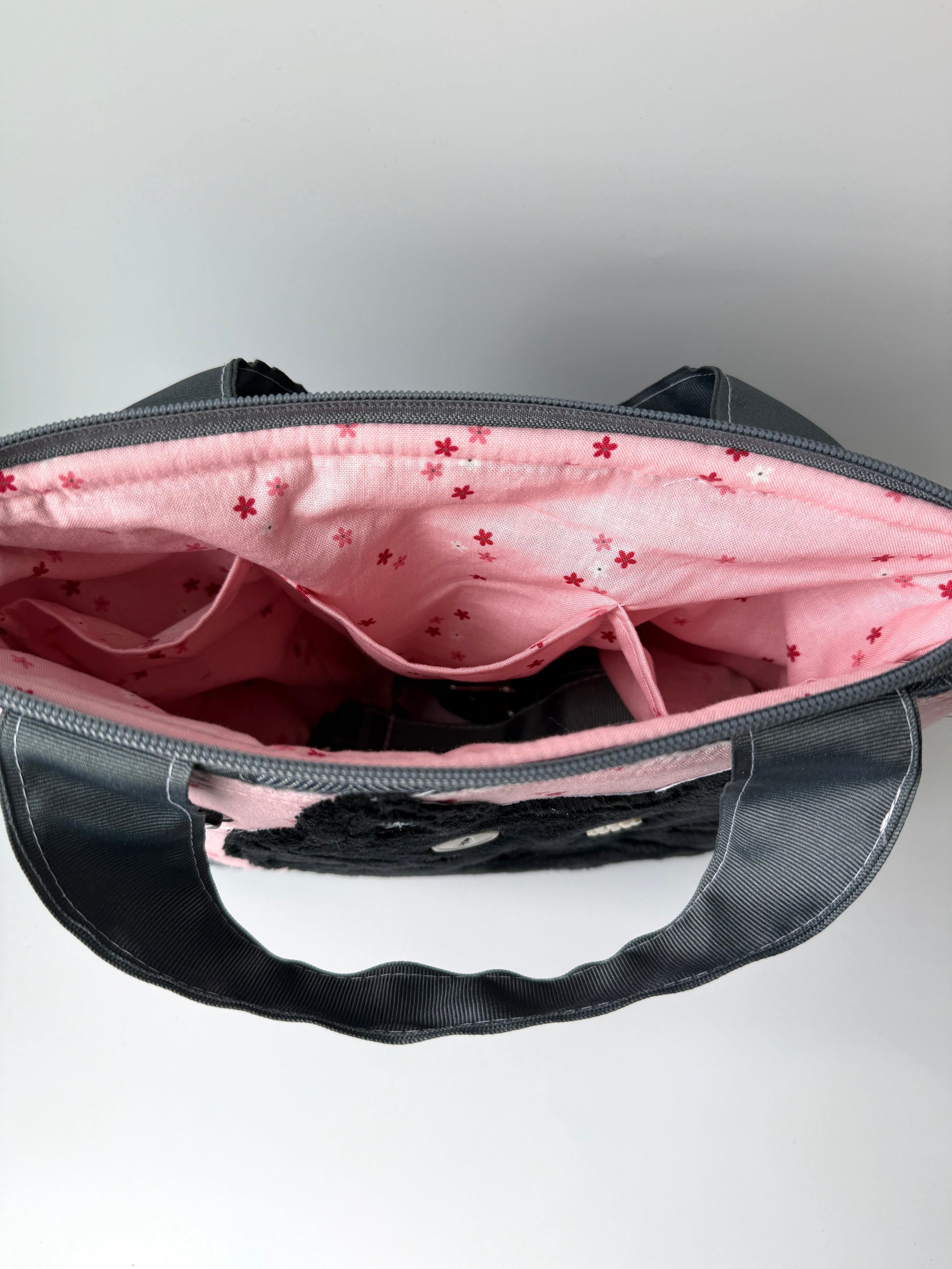 Just like my XL bitty bag BUT short and wide! Carry it by the cute grab handles or attached the adjustable cross body strap.