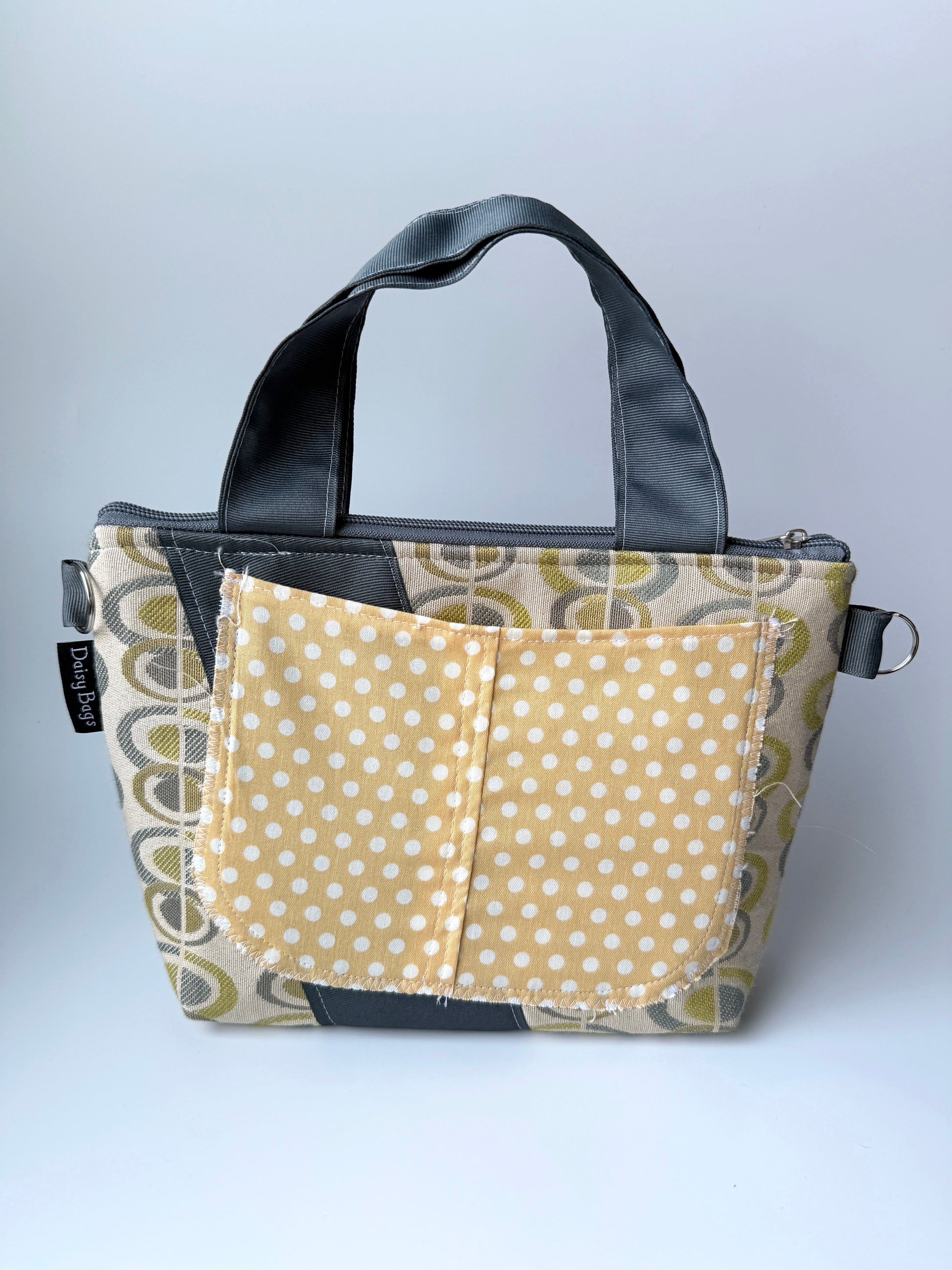 Just like my XL bitty bag BUT short and wide! Carry it by the cute grab handles or attached the adjustable cross body strap.