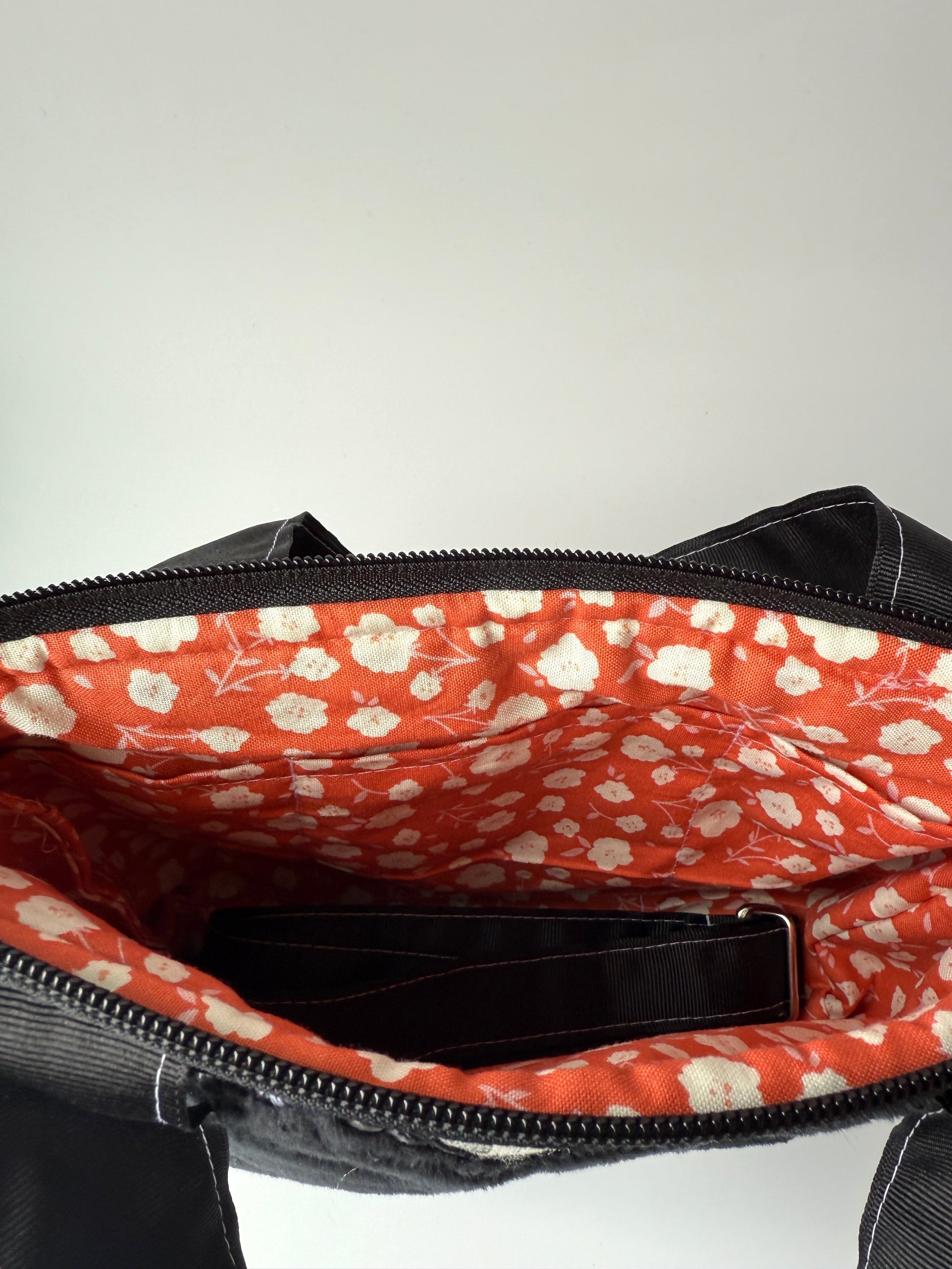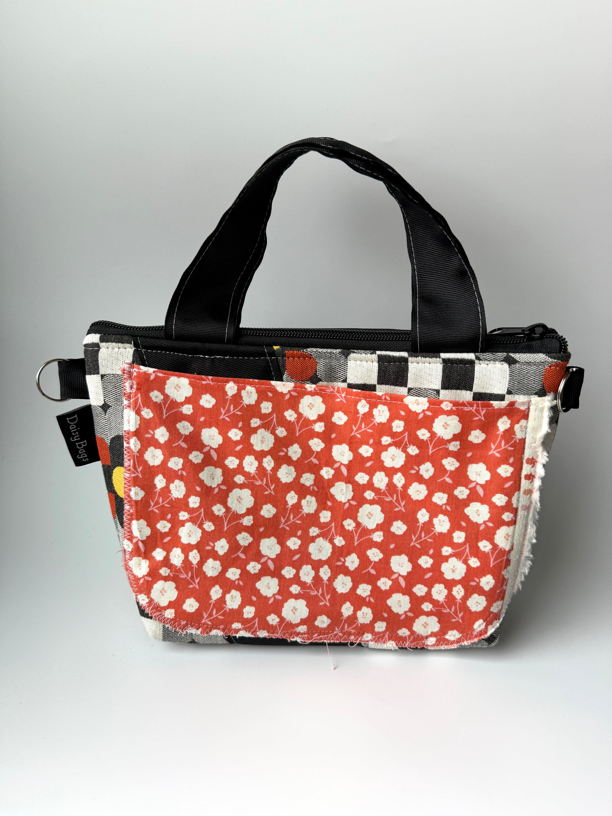 Just like my XL bitty bag BUT short and wide! Carry it by the cute grab handles or attached the adjustable cross body strap.
