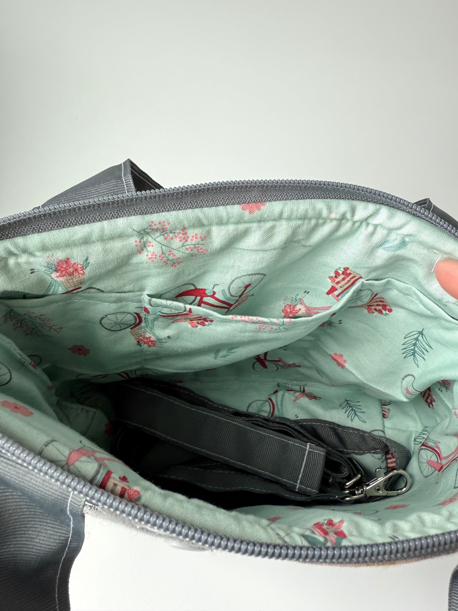 Just like my XL bitty bag BUT short and wide! Carry it by the cute grab handles or attached the adjustable cross body strap.