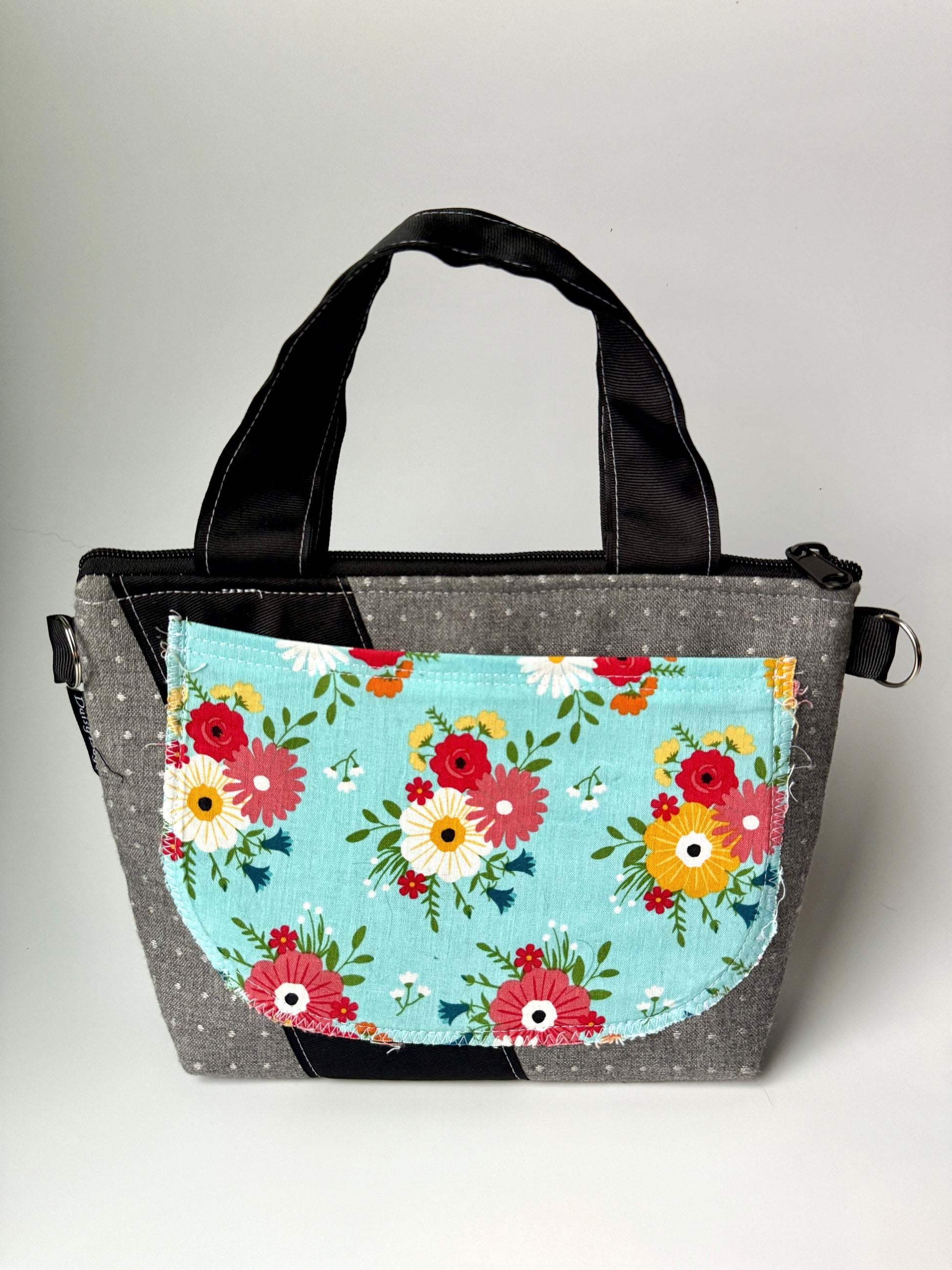 Just like my XL bitty bag BUT short and wide! Carry it by the cute grab handles or attached the adjustable cross body strap.