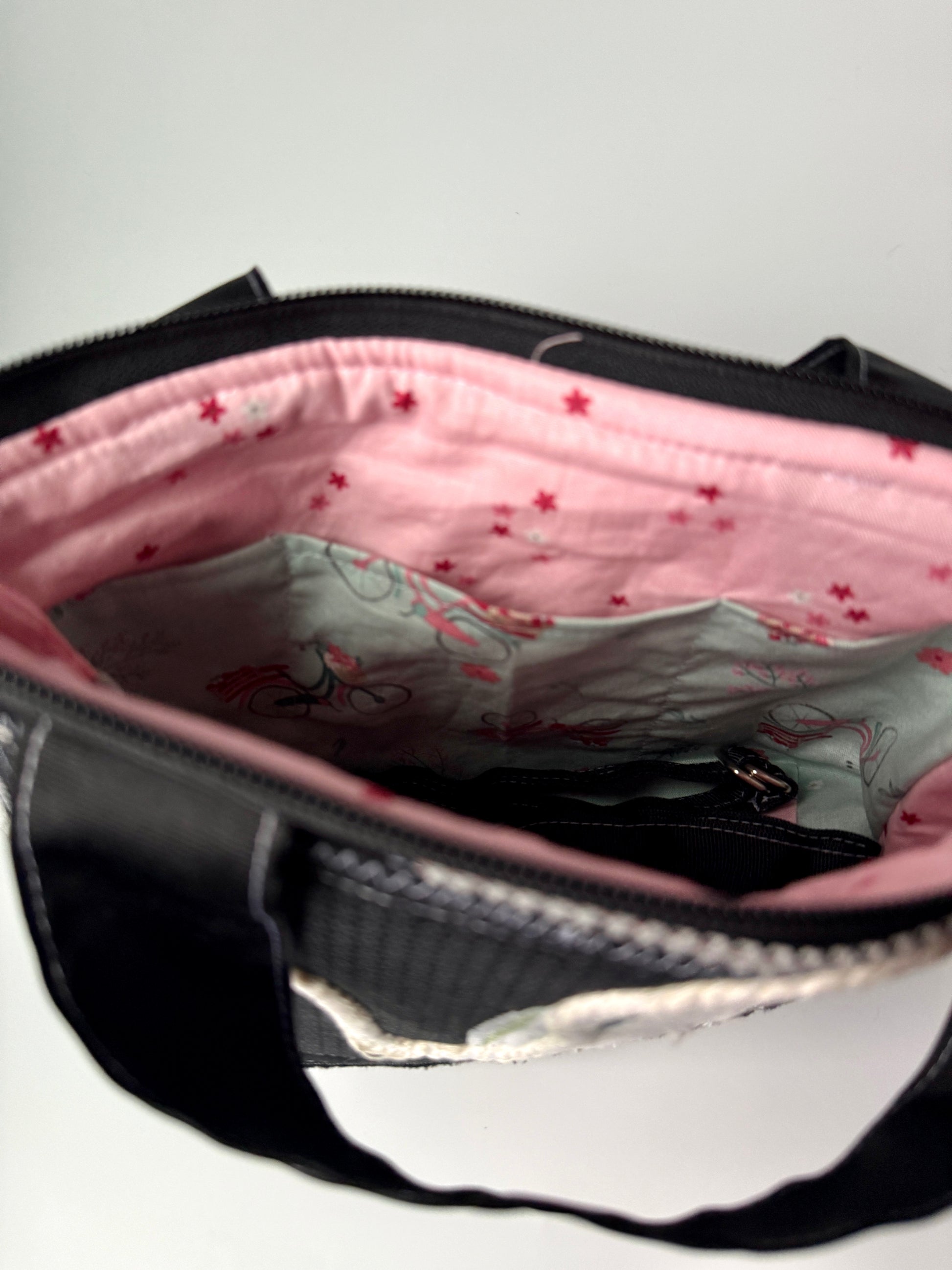 Just like my XL bitty bag BUT short and wide! Carry it by the cute grab handles or attached the adjustable cross body strap.