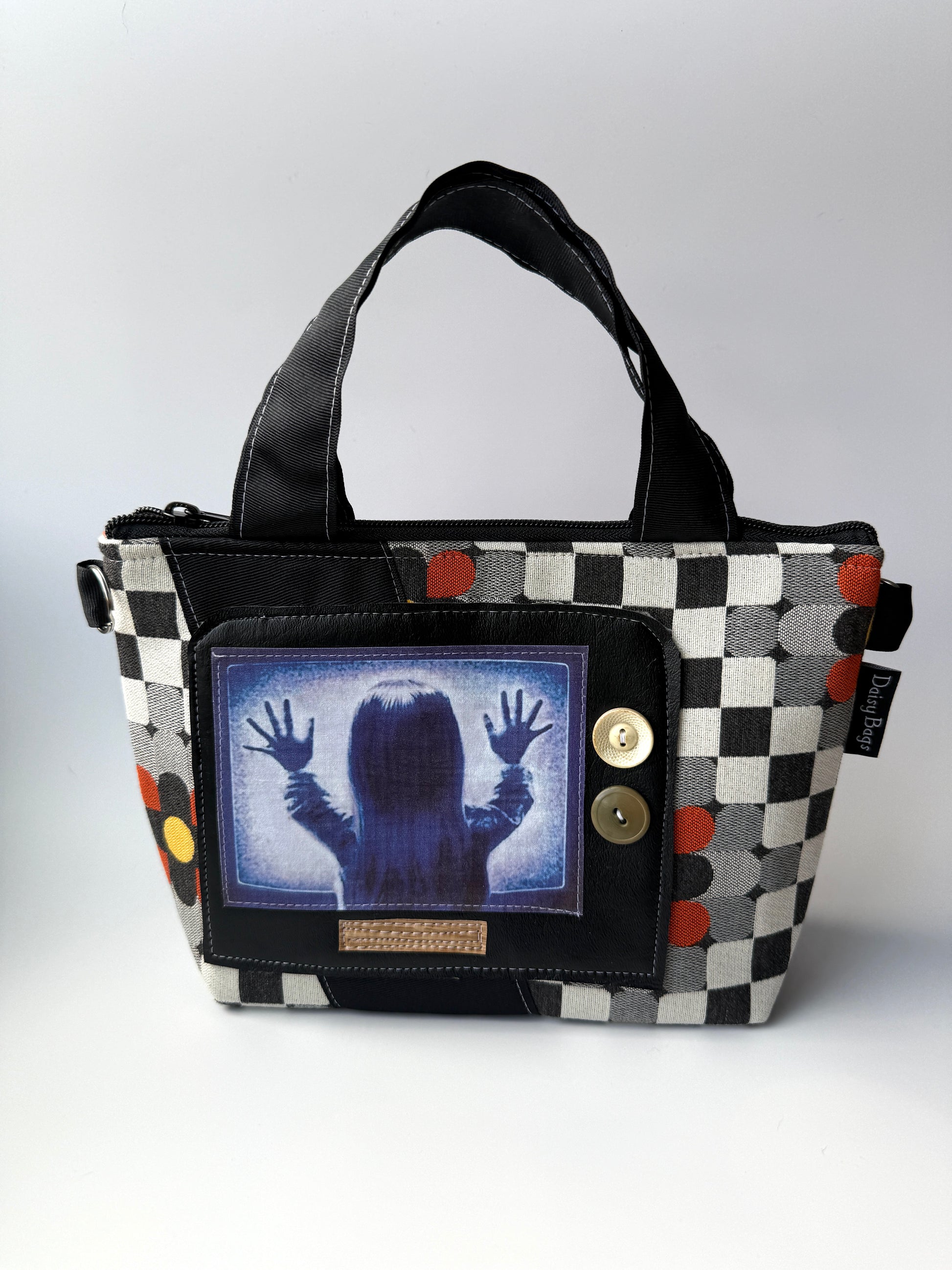 Just like my XL bitty bag BUT short and wide! Carry it by the cute grab handles or attached the adjustable cross body strap.
