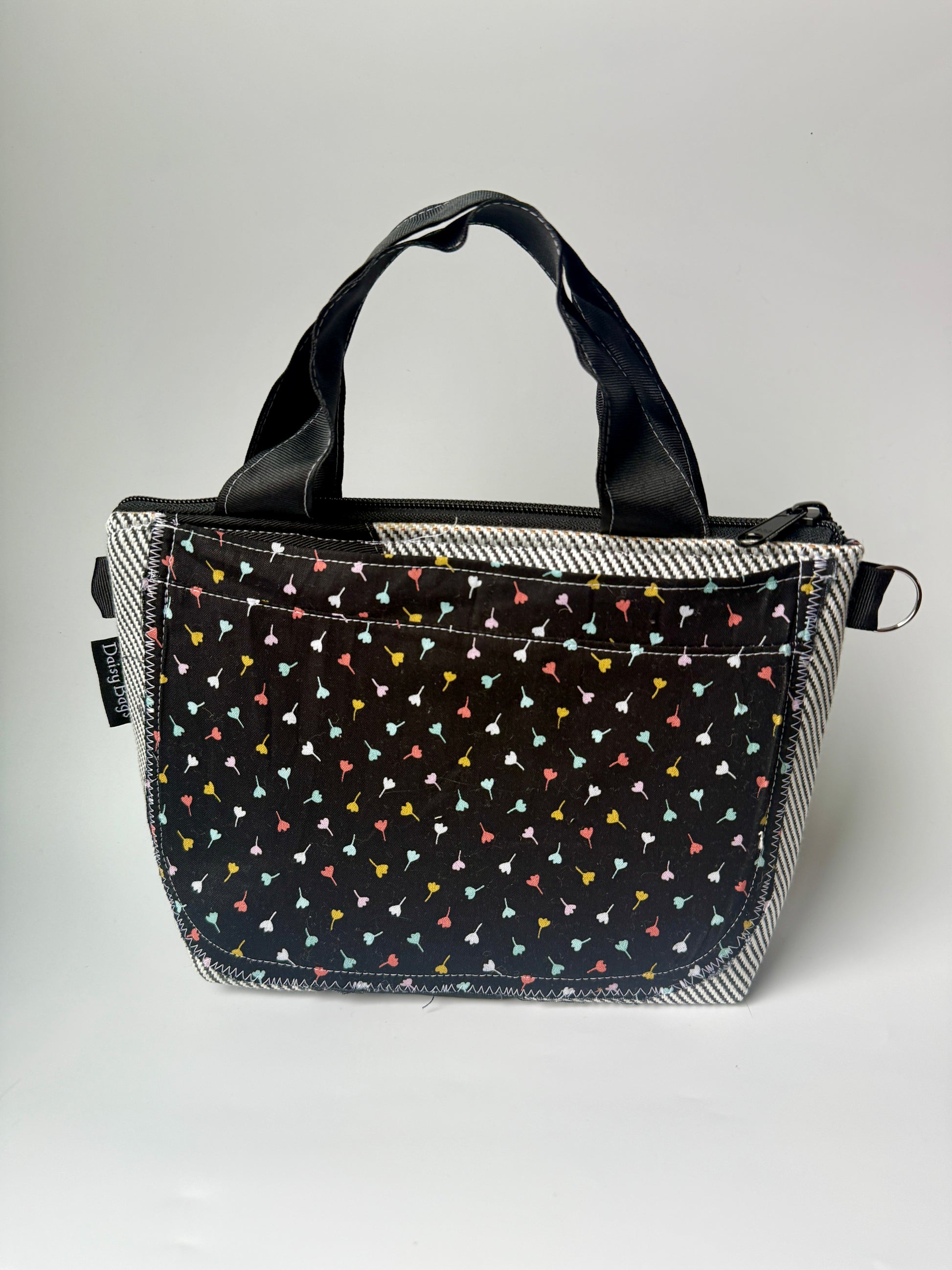 Just like my XL bitty bag BUT short and wide! Carry it by the cute grab handles or attached the adjustable cross body strap.